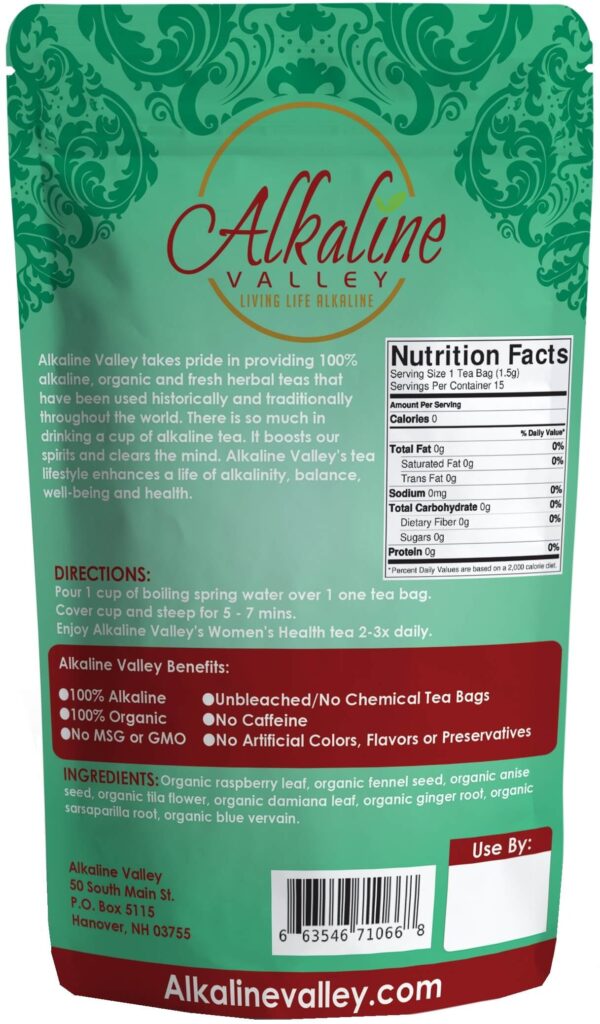 Alkaline Valley is the only tea company to create its women’s health tea blend from 100% alkaline ingredients.